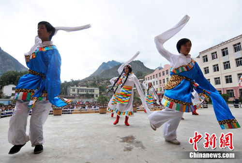9月30日,甘肅舟曲縣第三初級(jí)中學(xué)舉行迎國(guó)慶61周年文藝匯演,祝福祖國(guó)更加強(qiáng)盛。今年8月8日,舟曲遭遇特大山洪泥石流地質(zhì)災(zāi)害,經(jīng)過(guò)1月多的搶險(xiǎn)救災(zāi)工作,舟曲救災(zāi)工作已步入轉(zhuǎn)型,如今的縣城,多數(shù)商戶(hù)恢復(fù)營(yíng)業(yè),學(xué);謴(fù)教學(xué)秩序。