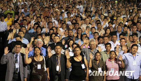 1月14日,尼加拉瓜全國109名當(dāng)選市長和數(shù)百名副市長及市政議員在馬那瓜市的革命廣場舉行集體宣誓就職儀式。塞薩爾·佩雷斯攝