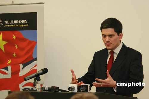 當?shù)貢r間22日下午,英國外交大臣米利班德在曼徹斯特中國藝術(shù)中心發(fā)表演講,發(fā)布英國政府首個對華關(guān)系策略框架性文件,強調(diào)英國未來幾年要把促進與中國的關(guān)系作為“重中之重”。中新社發(fā) 李鵬 攝