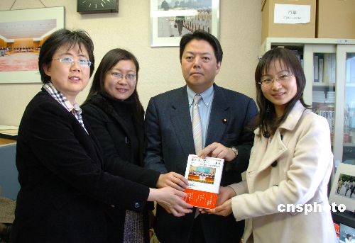 2月6日,日本前防衛(wèi)大臣、日中友好議員聯(lián)盟秘書長、參議院議員林芳正,在他的事務(wù)所接見了第四屆中國人日語征文大賽主辦單位代表日本僑報社社長張景子和兩名最優(yōu)秀獎(日本大使獎)獲獎?wù)摺本┐髮W(xué)研究生徐蓓和湘潭大學(xué)青年教師張桐赫。林芳正勉勵獲獎?wù)吆退袇①愓呃^續(xù)努力,為日中交流作出更大貢獻(xiàn)。圖為林芳正與徐蓓、張桐赫及主辦單位代表合影。中新社發(fā) 段躍中 攝