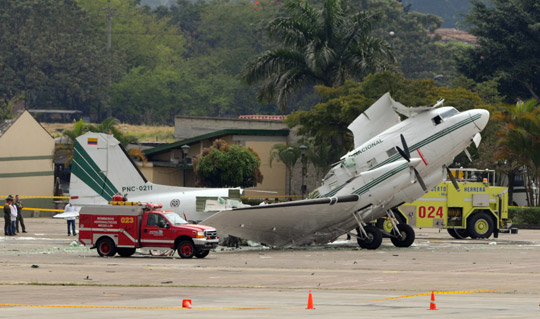 2月18日,哥倫比亞國家警察的一架DC-3飛機(jī)在麥德林的一個(gè)機(jī)場發(fā)生爆炸,造成至少8名警察受傷。圖為爆炸的飛機(jī)殘骸癱在停機(jī)坪上。