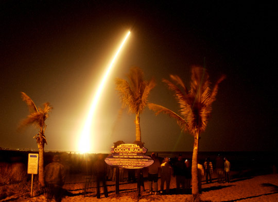 中新網(wǎng)3月7日電 美國(guó)東部時(shí)間6日22時(shí)50分,世界首個(gè)用于探測(cè)太陽(yáng)系外類(lèi)地行星的“開(kāi)普勒”號(hào)太空望遠(yuǎn)鏡在美國(guó)卡納維拉爾角空軍基地發(fā)射升空。圖為群眾正在觀看“開(kāi)普勒”號(hào)升空的盛況。