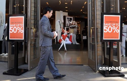 周日原本是商場(chǎng)人氣最旺的時(shí)候,洛杉磯市區(qū)的一家中高檔服裝店打出“最高打五折”的告示,店員在門口發(fā)放優(yōu)惠券,但店內(nèi)顧客依舊寥寥。受金融危機(jī)影響,全美失業(yè)率突破百分之八,消費(fèi)者信心大受打擊,中高檔商品經(jīng)營(yíng)者首當(dāng)其沖。中新社發(fā) 張煒 攝