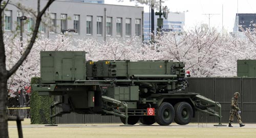 4月5日,日本自衛(wèi)隊(duì)的“愛國(guó)者-3”型攔截導(dǎo)彈發(fā)射裝置在朝鮮發(fā)射事件后重新歸回在防衛(wèi)省的原位。日本政府當(dāng)天上午宣布,朝鮮于當(dāng)?shù)貢r(shí)間5日11時(shí)30分(北京時(shí)間10時(shí)30分)左右向東發(fā)射一個(gè)飛行物,日本未使用導(dǎo)彈防御系統(tǒng)對(duì)朝鮮發(fā)射物進(jìn)行攔截。