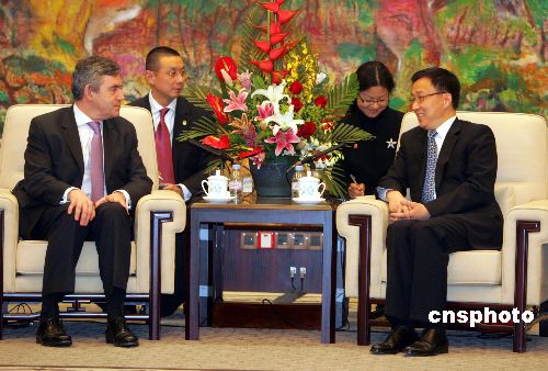 上海市市長(zhǎng)韓正會(huì)見(jiàn)來(lái)華訪(fǎng)問(wèn)的英國(guó)首相戈登·布朗。