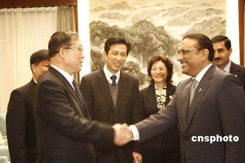 1月20日至23日,巴基斯坦總統(tǒng)扎爾達里將先后訪問湖北和上海,考察中國水利、農(nóng)業(yè)、金融等領(lǐng)域發(fā)展情況。圖為湖北省省長李鴻忠會見扎爾達里總統(tǒng)。中新社發(fā) 艾啟平 攝