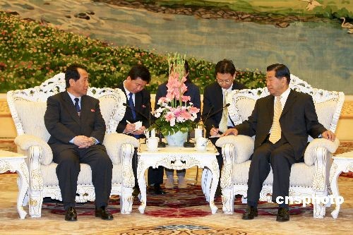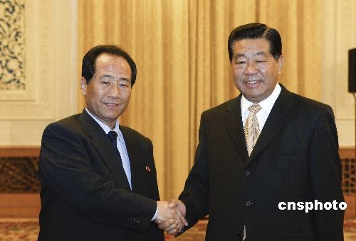 2月25日,全國政協(xié)主席賈慶林在北京人民大會堂會見朝鮮勞動黨中央科學教育部部長李光濠。中新社發(fā) 盛佳鵬 攝