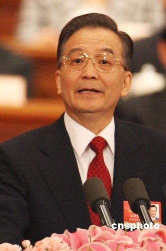 3月5日上午,十一屆全國人大二次會議在北京人民大會堂開幕,國務(wù)院總理溫家寶向大會作政府工作報告。中新社發(fā) 任晨鳴 攝