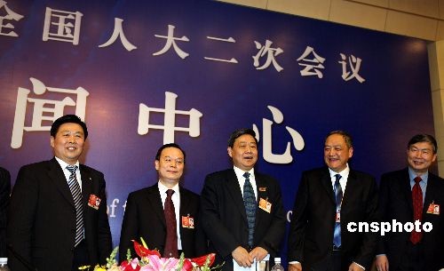 3月7日下午,出席十一屆全國人大二次會議的5位大學(xué)校長代表:山東大學(xué)校長徐顯明,北京大學(xué)校長、中科院院士周其鳳,南開大學(xué)校長、中科院院士饒子和,中山大學(xué)校長黃達(dá)人、華中科技大學(xué)校長李培根(從左至右)在大會新聞中心就教育公平等問題接受媒體采訪。
