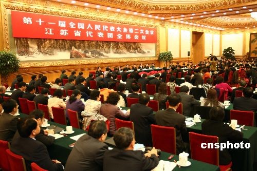 3月7日,全國人大江蘇代表團(tuán)在人民大會堂舉行全體會議。中新社發(fā) 杜洋 攝