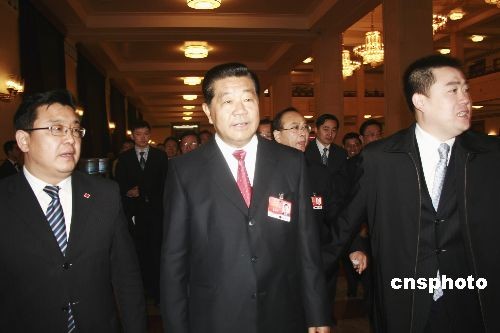 2009年3月12日9時,全國政協(xié)十一屆二次會議在人民大會堂閉幕,全國政協(xié)主席賈慶林步入會場。中新社發(fā) 金立冬 攝