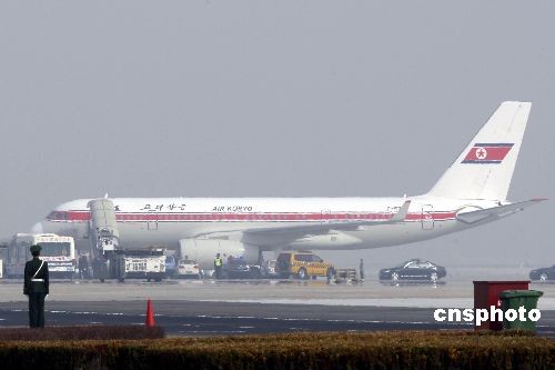3月17日,朝鮮民主主義人民共和國內(nèi)閣總理金英日乘專機(jī)抵達(dá)北京首都國際機(jī)場。應(yīng)國務(wù)院總理溫家寶邀請(qǐng),金英日當(dāng)日上午抵達(dá)北京,開始對(duì)中國進(jìn)行為期5天的正式友好訪問。據(jù)悉,此訪是金英日就任總理后首次訪華。中新社發(fā) 盛佳鵬 攝