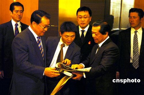 正在日本進(jìn)行友好訪(fǎng)問(wèn)的中共中央政治局常委李長(zhǎng)春與日本主要媒體界人士進(jìn)行了廣泛的接觸和深入的交流。他不僅于3月30日晚宴請(qǐng)了日本14家主要媒體負(fù)責(zé)人,還計(jì)劃于31日訪(fǎng)問(wèn)NHK電視臺(tái)、讀賣(mài)新聞社、凸版印刷公司。圖為3月30日晚,日本媒體界人士向李長(zhǎng)春贈(zèng)送報(bào)紙。中新社發(fā) 朱沿華 攝
