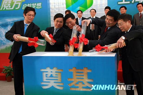 4月25日,2010年上海世博會上海企業(yè)聯(lián)合館在世博園企業(yè)館展區(qū)舉行開工儀式。以“城市,升華夢想”為主題的上海企業(yè)聯(lián)合館,由上海市國資委下屬的30多家大中型國有企業(yè)聯(lián)合出資建造,是一座獨具特色的生態(tài)智能建筑。它采用可循環(huán)利用的再生塑料和太陽能熱水發(fā)電技術(shù),場地范圍內(nèi)的雨水將得到回收,經(jīng)過處理后作為場館內(nèi)的日常用水和“噴霧”。