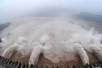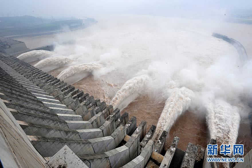 7月19日,三峽大壩開啟6個泄洪深孔和一個排漂孔泄洪。當日上午8時,三峽水庫入庫流量增至58000立方米/秒,再創(chuàng)今年入汛以來新高。長江三峽集團公司目前正按長江防總最新調(diào)度令,從19日10時起,再度加大泄洪力度,將出庫流量調(diào)高到40000立方米/秒,積極迎戰(zhàn)建庫以來的最大洪峰。據(jù)長江水文局最新預報,長江上游正在形成一場大洪水,洪峰流量將逼近70000立方米/秒。 鄭家裕 攝(圖片來源:新華網(wǎng))