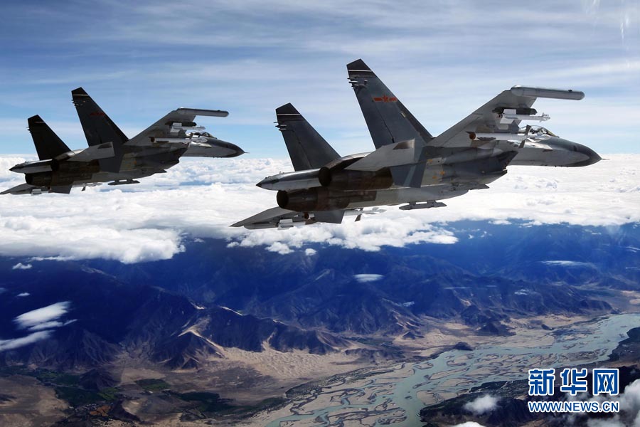 7月6日,戰(zhàn)機在青藏高原上空飛行。今年3月以來,成都軍區(qū)空軍某部在西藏進行第三代戰(zhàn)機攜實彈高原訓(xùn)練,組織戰(zhàn)機進行高原條件下的復(fù)雜氣象飛行、戰(zhàn)術(shù)戰(zhàn)法探索飛行以及極限性能檢測飛行等訓(xùn)練。劉應(yīng)華 攝