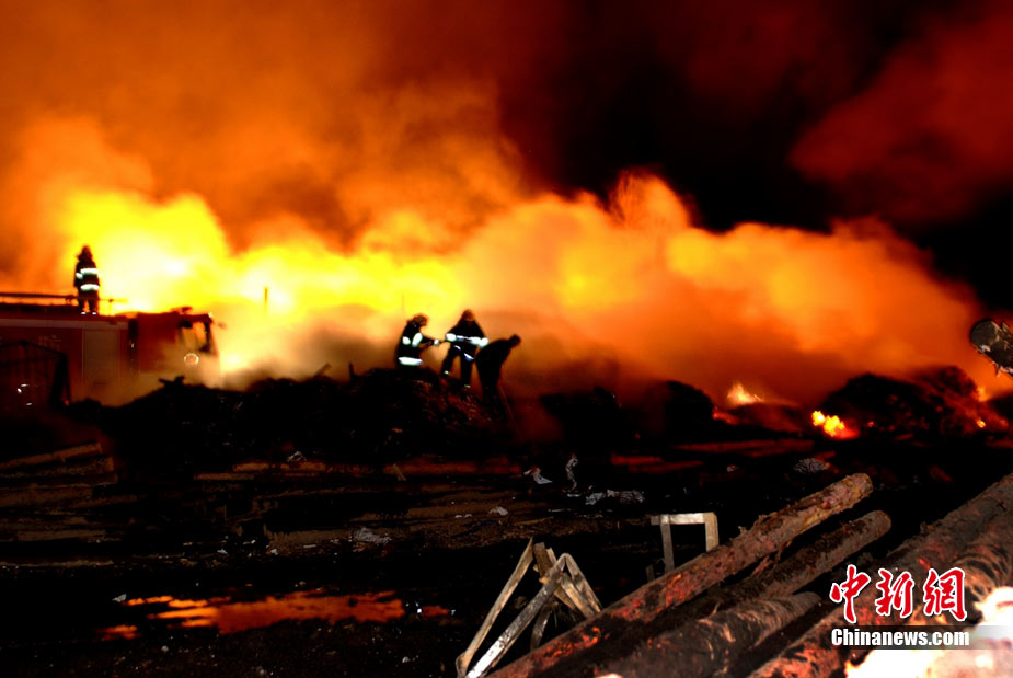 2010年8月16日9時(shí)40分左右,黑龍江省伊春市烏馬河區(qū)華利實(shí)業(yè)有限公司鞭炮廠發(fā)生持續(xù)爆炸。爆炸發(fā)生后,伊春市委、市政府緊急啟動(dòng)爆炸事件、醫(yī)療救護(hù)應(yīng)急處置預(yù)案,緊急調(diào)派公安、消防、醫(yī)療救護(hù)、武警部隊(duì)、駐軍部隊(duì)2000余人及時(shí)進(jìn)行搶救,經(jīng)過(guò)8個(gè)多小時(shí)的奮力鏖戰(zhàn),因爆炸引起的火災(zāi)已全部撲滅。截至17日零時(shí),發(fā)生在當(dāng)?shù)貫躐R河區(qū)的鞭炮廠爆炸已造成19人死亡,5人失蹤,住院傷者153人。準(zhǔn)確原因正在進(jìn)一步調(diào)查之中。圖為16日夜23時(shí)30分,武警消防部隊(duì)官兵不辭辛苦仍戰(zhàn)斗在火場(chǎng)一線清理殘火。陳剛 攝