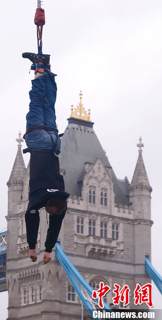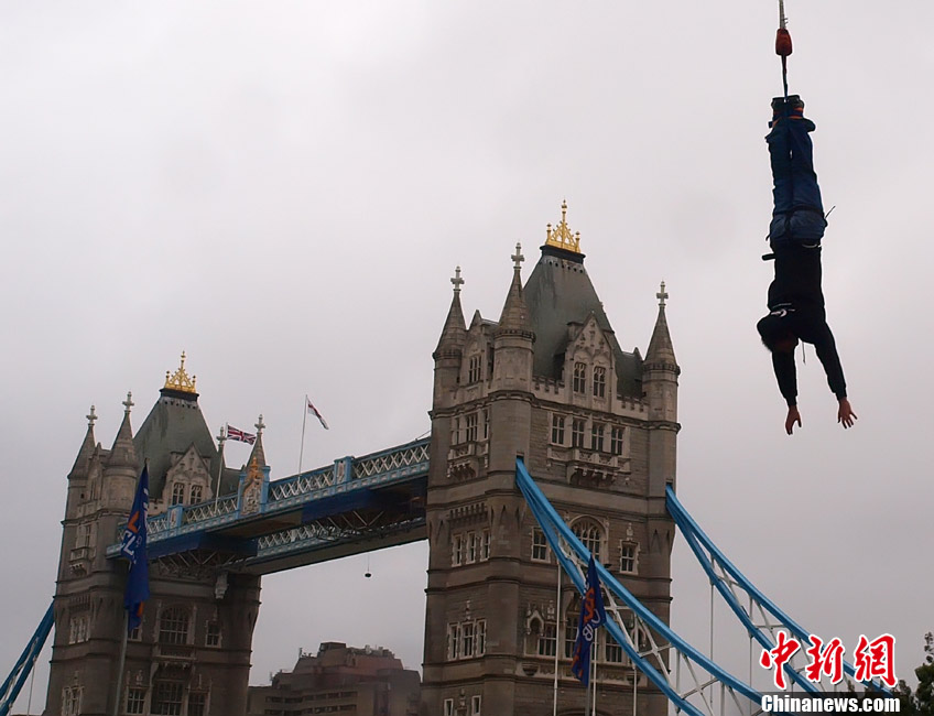 9月26日,英國倫敦,一位名叫James Field的男子在一個小時內完成了42次蹦極跳,打破世界紀錄。