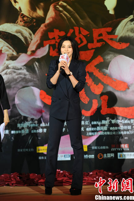 11月15日,賀歲檔大片《趙氏孤兒》群星閃耀媒體見面會(huì)在北京盛大舉辦。導(dǎo)演陳凱歌攜主演葛優(yōu)、王學(xué)圻、黃曉明、范冰冰、趙文卓、海清、趙文浩出席。葛優(yōu)、王學(xué)圻飾演的程嬰和屠岸賈在片中有諸多較量,此前傳聞兩位大腕暗自使勁、互相飚戲。為了打破傳言,現(xiàn)場(chǎng)葛優(yōu)、王學(xué)圻上演“親密熊抱”,王學(xué)圻出人意料的“背摔”讓葛優(yōu)險(xiǎn)些摔倒在地,F(xiàn)場(chǎng)氣氛熱烈,笑聲不斷。中新社記者 李學(xué)仕 攝
