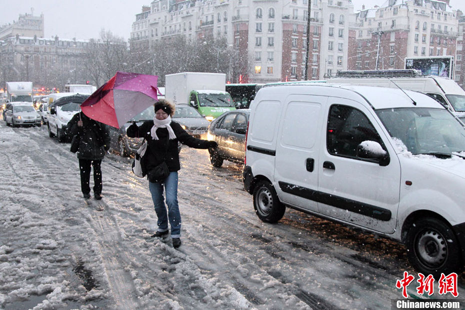 當(dāng)?shù)貢r間12月8日,法國巴黎降下二十多年來最大一場雪,導(dǎo)致埃菲爾鐵塔關(guān)閉,主要機(jī)場短時關(guān)閉,上百航班延誤。巴黎地區(qū)所有的高速公路都無法通行,350個公交線路只有極少數(shù)在繼續(xù)運(yùn)行。