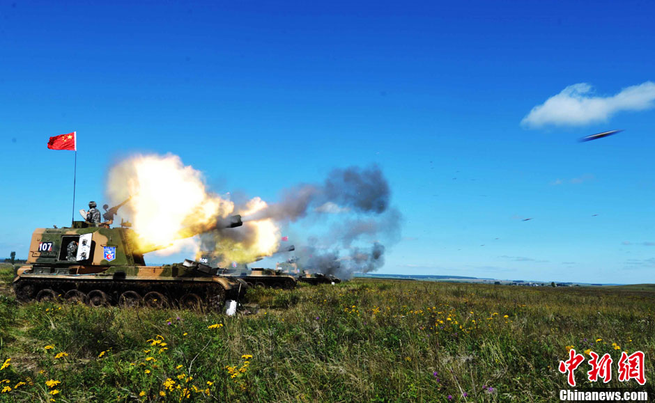 中俄聯(lián)合反恐軍事演習(xí)進行實兵實彈協(xié)同訓(xùn)練