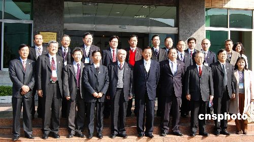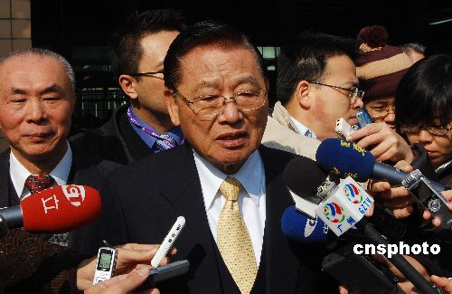 一月九日上午,海協(xié)會(huì)與;鶗(huì)聯(lián)合參訪團(tuán)在廣州考察一家臺(tái)資企業(yè)?疾旖Y(jié)束后,臺(tái)灣;鶗(huì)董事長(zhǎng)江丙坤接受兩岸記者聯(lián)合采訪。中新社發(fā) 柯小軍 攝
