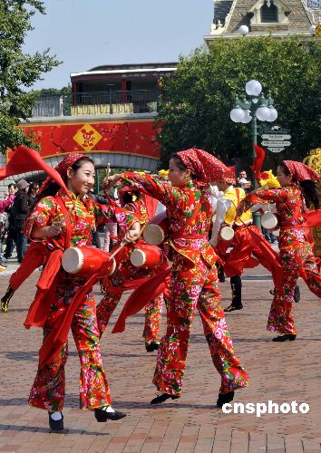 一月十五日,香港迪斯尼樂(lè)園為迎接農(nóng)歷新年來(lái)臨,特別舉行〝福到滿城賀金牛〞大型巡游。中新社發(fā) 鄧慶樂(lè) 攝