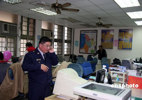 南京靈谷寺赴臺參訪團一行六人,一月十二日應(yīng)臺北市凈土宗善導(dǎo)寺邀請到臺進行宗教交流。十四日上午七時許,靈谷寺住持凈然法師被發(fā)現(xiàn)陳尸于入住酒店的房間床上,同住一室的靈谷寺監(jiān)院純?nèi)绶◣焺t墜樓身亡。事件發(fā)生地轄區(qū)臺灣新竹市警察局第三分局分局長黃炳訓(xùn),十五日接受中新社記者訪問時介紹,初步勘驗結(jié)果,警方研判兩名法師的死亡之間有關(guān)聯(lián)性。但須由警務(wù)主管部門的刑偵局對相關(guān)物證進行權(quán)威檢驗和比對后,才能有最終結(jié)論。黃炳訓(xùn)十七日接受記者訪問時說,警方十六日下午又取得在死者房間獲得的若干新物證,會送上級刑偵部門進行比對。預(yù)定十九日解剖死者的尸體,進一步理清案情。目前正等待鑒識結(jié)果和最終報告的完成。圖為新竹市警察局第三分局刑偵室,打電話者為黃炳訓(xùn)。中新社發(fā) 陳立宇 攝