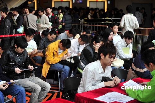 三月十三日,香港電腦節(jié)舉行招聘會(huì),聘請(qǐng)二百名臨時(shí)工,工作十二日,薪金有四千八百元,吸引大批人士到場(chǎng)應(yīng)聘。中新社發(fā) 譚達(dá)明 攝