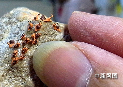 圖為臺灣著名微雕家陳逢顯創(chuàng)作的世界最小“蝸!比海恐晃伵5臍、觸角、眼睛兼具,有形有神。中新社記者 陳立宇 攝