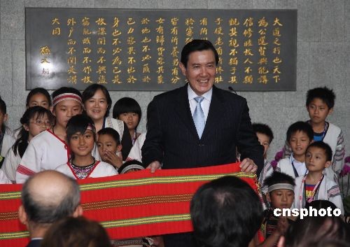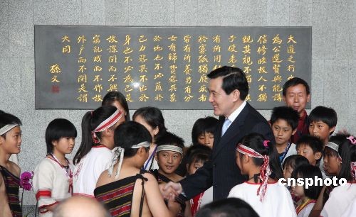 4月13日是蔣經(jīng)國(guó)先生百年誕辰,臺(tái)灣近日舉辦系列紀(jì)念活動(dòng)。“永續(xù)經(jīng)國(guó)”蔣經(jīng)國(guó)先生百年誕辰紀(jì)念特展4月11日在臺(tái)北市“國(guó)父紀(jì)念館”開幕。圖為臺(tái)灣領(lǐng)導(dǎo)人馬英九出席開幕式,并與前來(lái)觀展的孩子們合影。中新社發(fā) 耿軍 攝