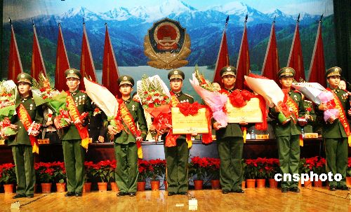 |   十一月六日下午,新疆公安邊防總隊(duì)召開(kāi)表彰大會(huì),參加天山-1號(hào)(2006)中哈聯(lián)合反恐演習(xí)的兩支武警機(jī)動(dòng)中隊(duì)和一百六十八名精英將士受到表彰。八月二十四日至二十六日,為期三天的天山-1號(hào)(2006)中哈聯(lián)合反恐演習(xí)分別在哈薩克斯坦阿拉木圖州和中國(guó)新疆伊寧市舉行,新疆公安邊防總隊(duì)和新疆反恐怖特別偵察隊(duì)的八百名官兵參加了此次演習(xí)。本次演習(xí)是在上海合作組織框架內(nèi),中哈執(zhí)法安全部門(mén)首次舉行的聯(lián)合反恐演習(xí),提高了對(duì)兩國(guó)執(zhí)法安全機(jī)關(guān)聯(lián)合打擊恐怖主義的組織能力和協(xié)同作戰(zhàn)能力,對(duì)于震懾和打擊本地區(qū)“三股勢(shì)力”,維護(hù)邊境地區(qū)的安全穩(wěn)定有著十分重要的意義。中新社發(fā) 劉新 攝
