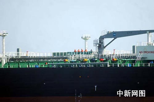 春節(jié)前夕,被護(hù)商船“凱達(dá)”號(hào)打出“中國海軍,能源衛(wèi)士!”標(biāo)語向護(hù)航官兵致敬。中新社記者 孫自法 攝