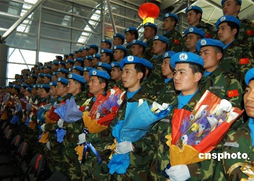 2月16日下午,中國第五批赴蘇丹維和部隊(duì)第一梯隊(duì)出征儀式在河南省鄭州市新鄭國際機(jī)場舉行。中國第五批赴蘇丹維和部隊(duì)共由375名官兵組成,包括一支工兵大隊(duì),一支運(yùn)輸大隊(duì)和一支醫(yī)療分隊(duì)。此次出征的第一梯隊(duì)共105人,包括工兵大隊(duì)40人,運(yùn)輸大隊(duì)30人,醫(yī)療分隊(duì)35人。他們將于當(dāng)?shù)貢r(shí)間17日10時(shí)左右到達(dá)蘇丹歐拜伊德,隨后轉(zhuǎn)乘聯(lián)合國包機(jī)飛赴瓦烏任務(wù)區(qū)。其余維和人員將于本月陸續(xù)抵達(dá)任務(wù)區(qū)。 中新社發(fā) 李亮 攝