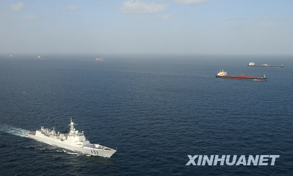 2月18日,中國海軍編隊成功護送13艘商船安全駛出亞丁灣,這是海軍編隊完成的第21批次護航任務,也是執(zhí)行護航任務以來的最大規(guī)模的護航行動。船隊綿延10公里,場面蔚為壯觀。新華社記者 朱鴻亮 攝