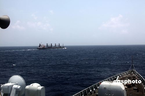 2009年4月11日,中國(guó)海軍首批護(hù)航編隊(duì)在亞丁灣開始執(zhí)行第40批商船護(hù)航任務(wù),“?凇碧(hào)導(dǎo)彈驅(qū)逐艦單獨(dú)伴隨護(hù)航一艘晚到的香港商船“明達(dá)”號(hào),從曼德海峽東口朝亞丁灣東部海域進(jìn)發(fā)。當(dāng)天早些時(shí)候,“武漢”艦已伴隨護(hù)航5艘商船先行。中新社發(fā) 孫自法 攝