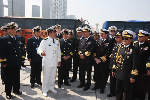 4月22日,多國(guó)海軍活動(dòng)進(jìn)行到第三天,今天來(lái)訪的各國(guó)海軍代表團(tuán)團(tuán)長(zhǎng)們將參觀中國(guó)海軍526“溫州”號(hào)導(dǎo)彈護(hù)衛(wèi)艦,328號(hào)常規(guī)潛艇和866號(hào)醫(yī)療船。來(lái)訪的各國(guó)艦艇編隊(duì)指揮員和艦艇長(zhǎng)今天也將登上526艦和866號(hào)醫(yī)療船參觀。