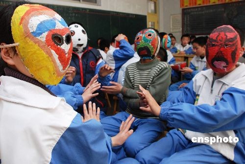3月16日,山東鄒平縣實(shí)驗(yàn)中學(xué)的學(xué)生用自制的面具表演校園生活自編劇。學(xué)生們用舊報(bào)紙?jiān)诔錃鈿馇蛏辖?jīng)過糊紙、描彩、勾畫、裁切等步驟自制個(gè)性面具,并進(jìn)行展示評比,以小組為單位,以學(xué)生身邊所見所聞為表演題材自編短劇在課堂上展演。據(jù)悉,該校成立機(jī)器人、繪畫、舞蹈、表演、攝影等各種創(chuàng)新活動小組,以培養(yǎng)學(xué)生動手能力和創(chuàng)新能力。中新社發(fā) 董乃德 攝