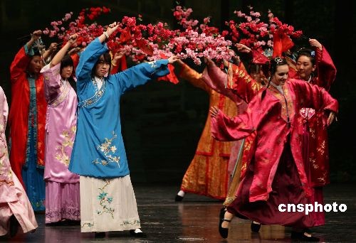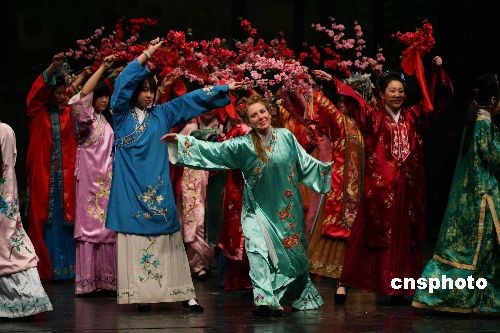 3月27日,來自北京中加學(xué)校的學(xué)生們和外籍教師共臺演出中國古典文學(xué)劇目《紅樓夢》片段,共同慶祝北京中加學(xué)校建校十二周年。包括中外來賓、家長代表及全校師生1700多人參加了校慶活動。中加學(xué)校是北京市第一所實施普通高中教育的中外合作新型學(xué)校,合作辦學(xué)的雙方是北京師范大學(xué)附屬實驗中學(xué)與加拿大紐賓士域省教育部和加拿大加皇國際教育投資集團(tuán)。中新社發(fā) 張宇 攝