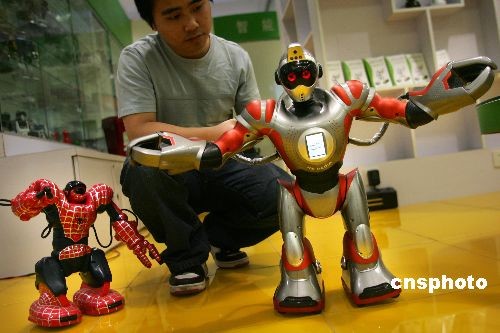 4月15日,北京首家機(jī)器人零售商店開業(yè)吸引顧客。該店位于中關(guān)村一電子商場內(nèi)。據(jù)該店羅經(jīng)理介紹,他們銷售的機(jī)器人有近百種,分為保潔型、娛樂型、教學(xué)型、家用型,價格從380元至58000元人民幣不等。保潔型機(jī)器人可每天定時清掃地面,自動躲避障礙物。娛樂型包括有機(jī)器人寵物、會跳舞的機(jī)器人等。教學(xué)型機(jī)器人一般用于高校計算機(jī)編程方面的教學(xué)。家用型機(jī)器人相對高端,臉龐分析系統(tǒng)可將陌生人的面容發(fā)送到主人手機(jī)上,具有“看家”功能,還能通過無線終端設(shè)備監(jiān)測家里老人的血壓脈搏等,發(fā)現(xiàn)問題會通知主人。中新社發(fā) 富田 攝