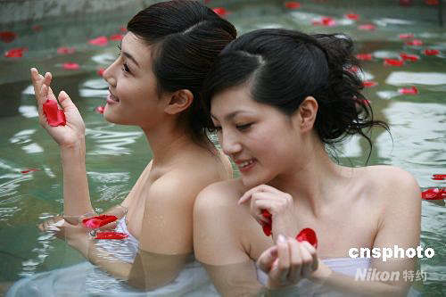 4月13日,安徽黃山醉溫泉湯池舉行模特秀。歷經(jīng)兩年勘測和開發(fā)后,安徽黃山醉溫泉已全面建成并投入使用。當日,花瓣錦簇,香氣四溢,男女模特在44.4度的溫泉戲水,“秀”出風情萬種、人與自然和諧共存的美好景象。中新社發(fā) 方也廣德 攝