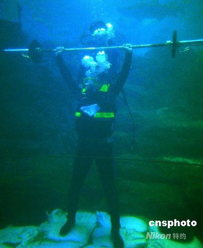 圖為選手在水下進行舉重比賽。中新社發(fā) 曲連遵 攝