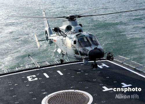 9月下旬,海軍某艦載機(jī)部隊(duì)載直升機(jī)進(jìn)行著艦訓(xùn)練。中新社發(fā) 鄢潤(rùn)波 攝