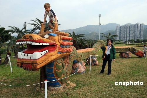 著名的香港沙田馬場自從2008年成為奧運(yùn)馬術(shù)賽場后,更是名氣遠(yuǎn)揚(yáng)。部分漂亮的“龍”造型馬術(shù)比賽跨欄,將成為體育運(yùn)動(dòng)珍品,在近日啟程赴北京展覽。圖為“龍”造型馬術(shù)比賽跨欄之一。中新社發(fā) 潘索菲 攝