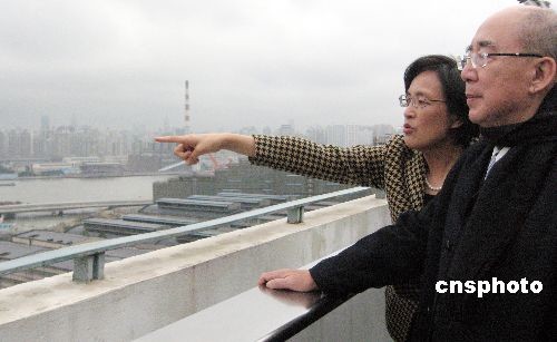 十二月二十一日,正在上海參加第四屆兩岸經(jīng)貿(mào)文化論壇的中國國民黨主席吳伯雄造訪上海世博局,登高俯瞰2010年上海世博會園區(qū)工地。中新社發(fā) 許曉青 攝
