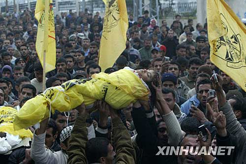12月30日,在加沙地帶北部城鎮(zhèn)拜特哈嫩,巴勒斯坦民眾為在以軍空襲中喪生的小姐妹拉瑪和哈婭舉行葬禮。小姐妹的年齡僅為4歲和11歲。