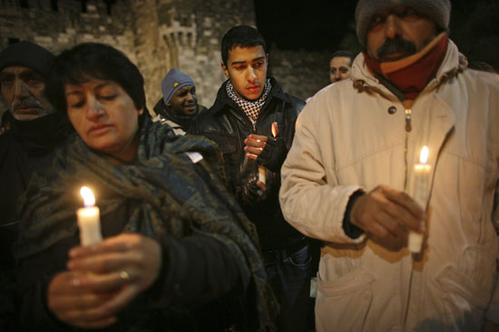 12月31日,巴勒斯坦居民手持蠟燭在耶路撒冷老城舉行集會,以示對加沙支持。聯(lián)合國安理會12月31日晚應(yīng)阿拉伯國家的要求召開緊急會議,討論巴以沖突問題,但沒有達成一致意見。