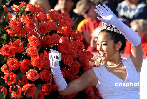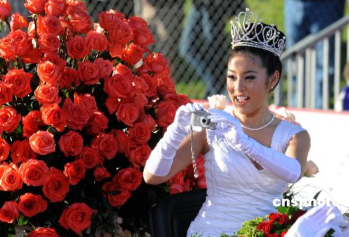 當(dāng)?shù)貢r(shí)間1月1日上午,第120屆美國(guó)玫瑰花車大游行在美國(guó)加州帕薩迪納市正式舉行。17歲華裔學(xué)生李君慧以第91屆美國(guó)“玫瑰皇后”的身份,引領(lǐng)玫瑰花車展開盛大游行。 中新社發(fā) 張煒 攝