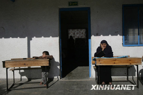 1月3日,在加沙地帶南部拉法,一名巴勒斯坦男孩(左)和家人臨時(shí)寄居在一個(gè)難民營(yíng)的學(xué)校里。