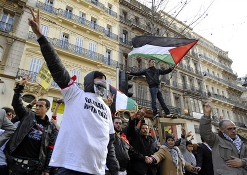 在法國馬賽,民眾舉行集會抗議以軍襲擊加沙地區(qū)。